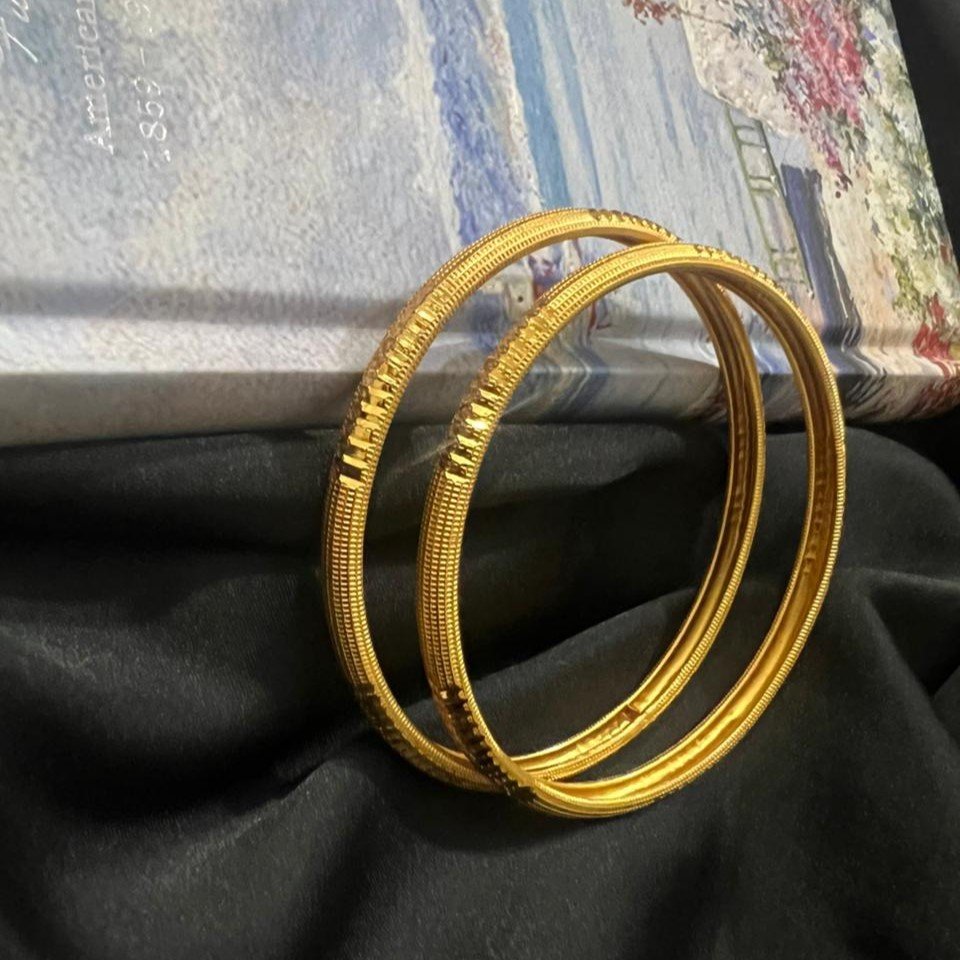 “Elevate your style with our stunning Gold Look Bangles (PAIR SIZE DHAI 2.8),