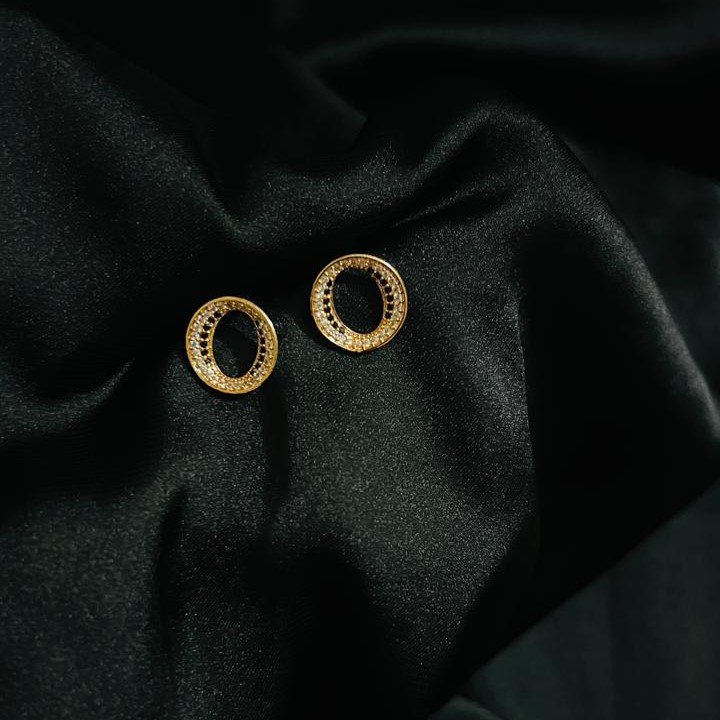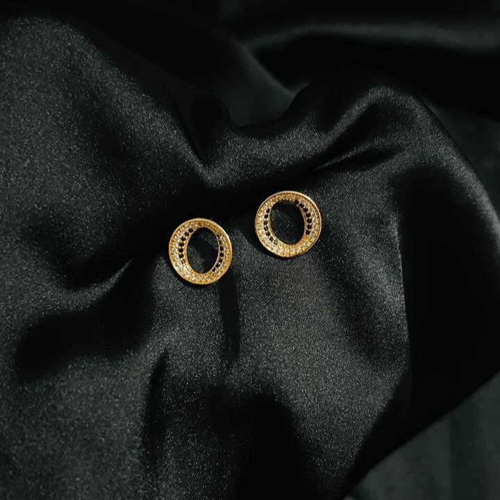 “Elevate your style with our stunning Rounded Black Stone Studs,