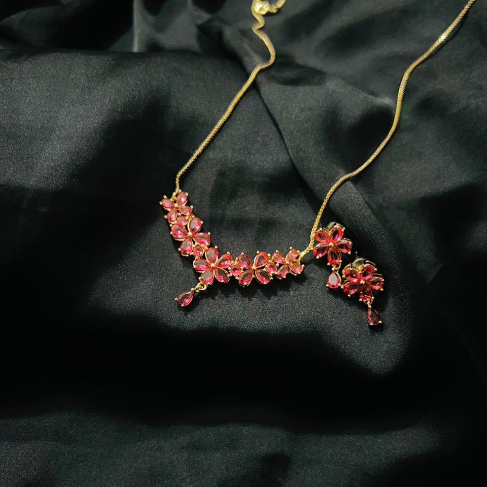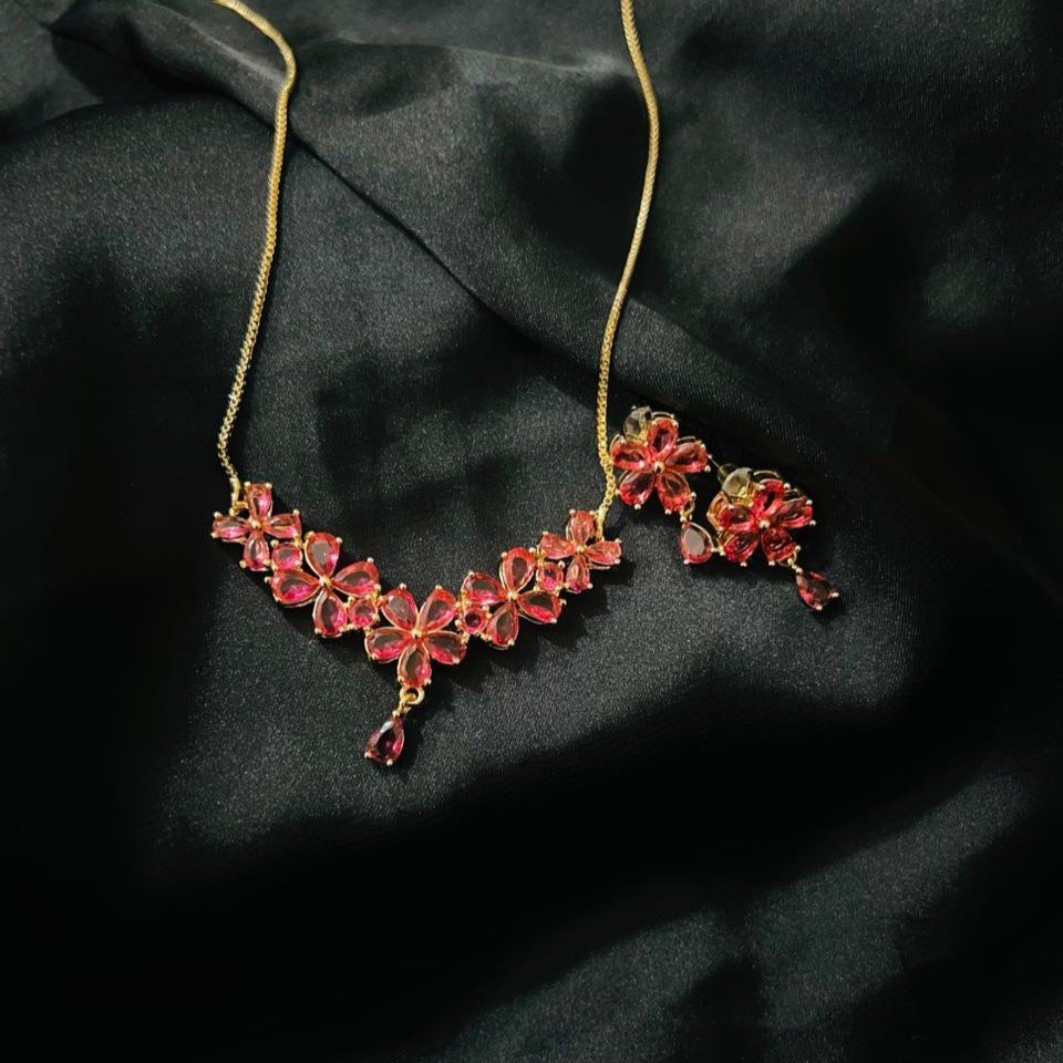 “Elevate your style with our stunning Ruby Floral Set,